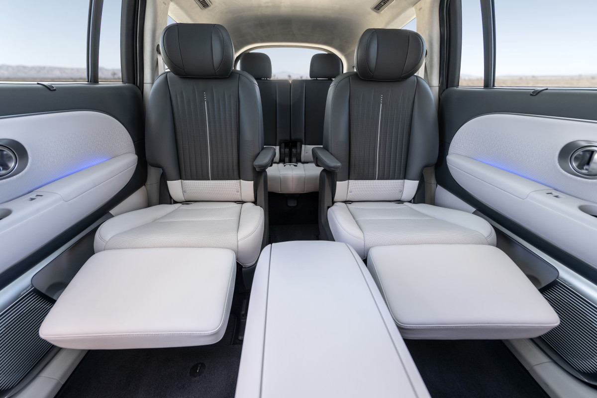 If inside flexibility is a precedence, the Ioniq 9 Calligraphy is the extra versatile choice. It presents three rows of seating as normal. Entrance seats are heated and ventilated, as are the 2nd-row Captain’s Chairs. On prime of that, the 2nd-row Leisure Seats get fancy wing-style headrests and leg-rests for final lounging consolation. 42.8 inches of legroom in row two is positively enormous. Upholstery is artificial H-Tex material that appears and feels premium, however leather-based shouldn’t be accessible. The panoramic glass roof comes normal, as do rear sunshades, multi-zone local weather management, and upscale colour schemes that make the cabin look far dearer than its worth would counsel. Practically all the pieces a consumer may need for consolation is baked into the trim with none want for choices.